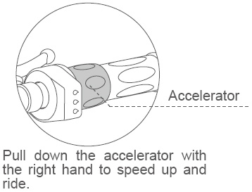 2. One foot steps on the pedal and look straight ahead. Rotate accelerator with right hand to speed up.